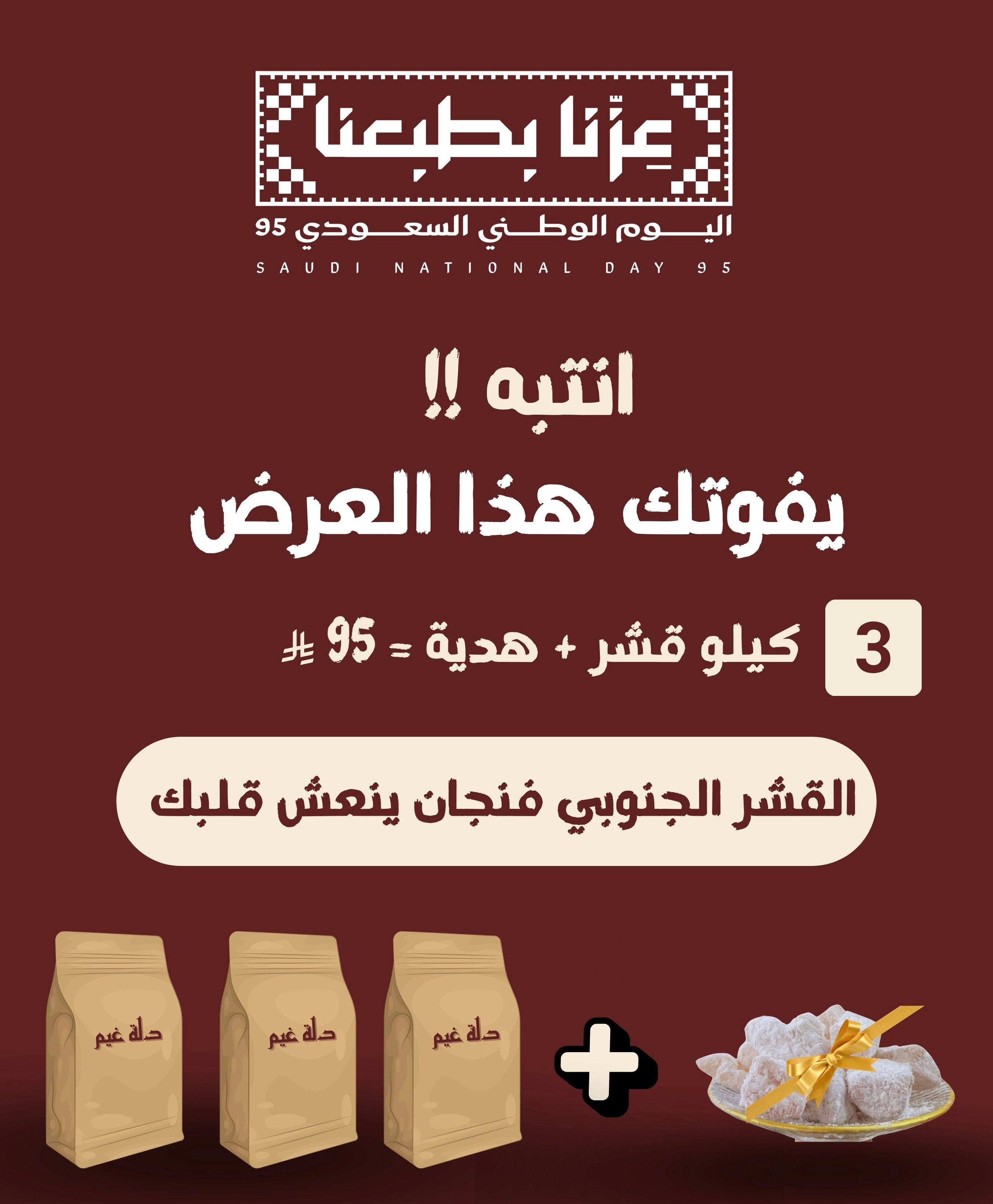 مشروب تراثي أصيل يجمع بين قشر البن الجنوبي الفاخر ومزيج من التوابل الطبيعية مثل الزنجبيل والقرفة والهيل. تمنحك طعمًا مميزًا يجمع بين نكهة القهوة ودفء البهارات، لتستمتع بكوب غني بالفوائد ومثالي للجلسات العائلية والضيافة